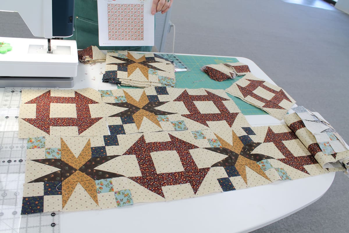 As quilters and guests mingled and looked at whatโs new from Prairie Quilt, they found a nearly completed quilt made by Bre Mondoux, this being her very first one. That quilt will soon be on display inside the store. Marilyn Coulter, who has watched her mom quilt growing up, says her favorite pattern over the years is the Taos and would like to do that one again. For now she is working on the quilt that will be featured in the Quilt Sampler magazine. This will be Prairie Quiltsโ second time to featured in the magazine.