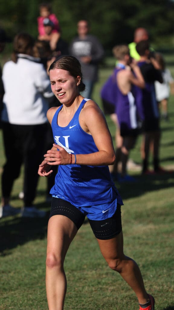 Team champions. Quinn Ward (3rd, 7:00.00), Jaynie Bennett (5th, 7:08.00), and Kennes Briley (7th, 7:12.00) set the tone, with scoring support from Dayanna Roldan (25th, 7:54.00) and Morgan Lester (29th, 8:00.10). Displacement help came from Ellie Copeland (38th, 8:08.10), Joy Matousek (42nd, 8:14.00), Kaylee Hladik (46th, 8:33.00), and Dakota Hochstrasser (56th, 8:54.00). Team result: 1st (49 points).