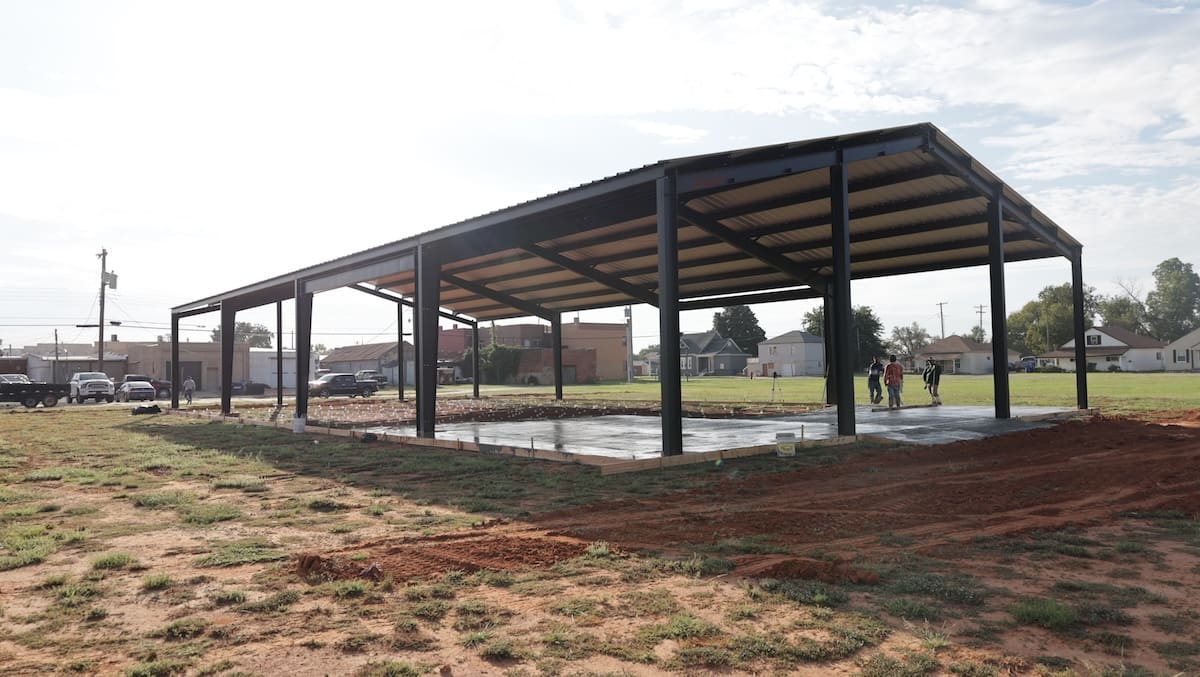 Premier Utility Services LLC of Kingfisher recently poured a new concrete floor for the pavilion, which is being developed under the direction of Discover Hennessey.