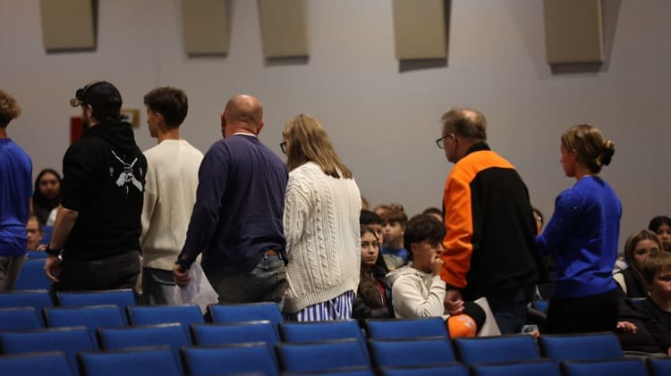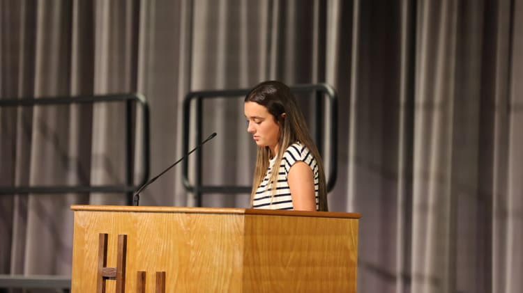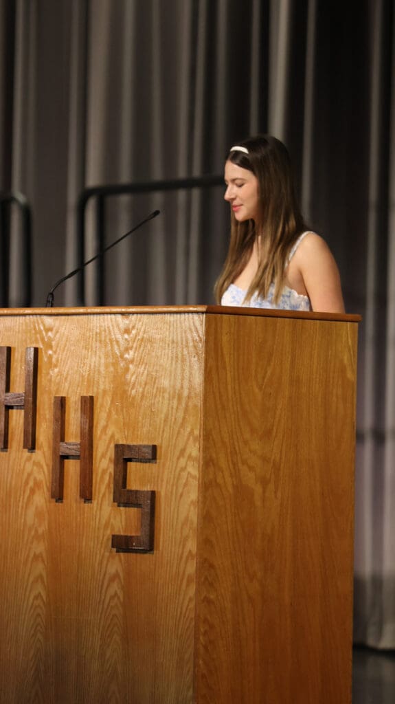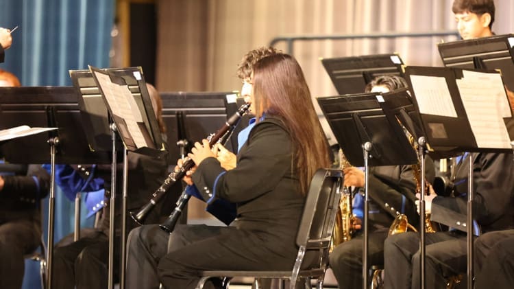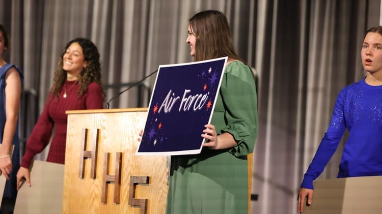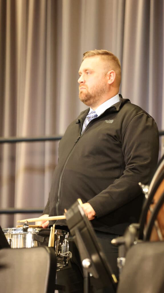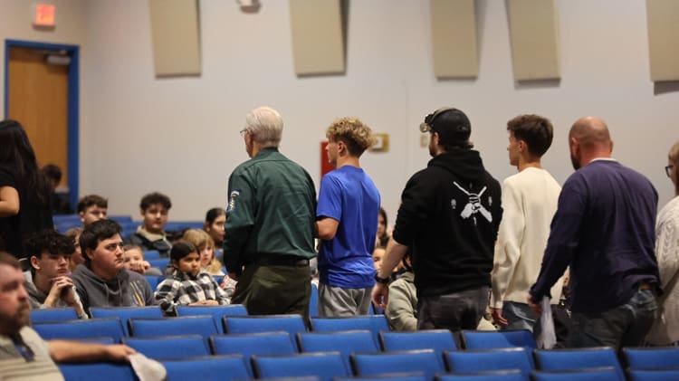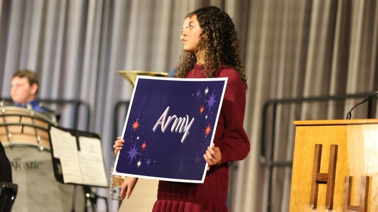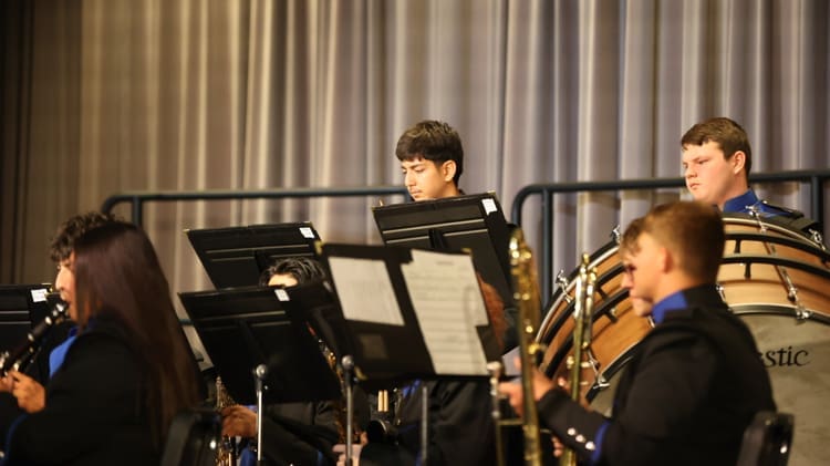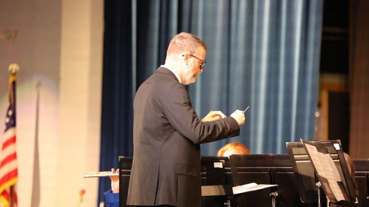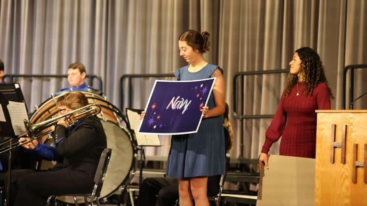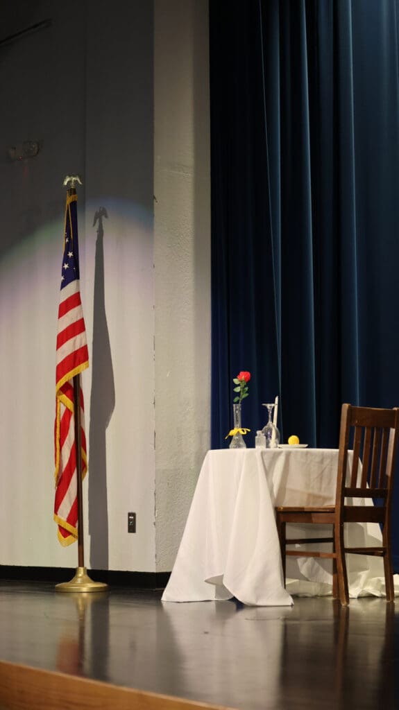 The program continued with a student-produced slideshow honoring local veterans, which led into Emma Copelandโs presentation on the history of the Armed Forces. The band returned with โIn Honor: The Armed Forces of the United States of America,โ a performance that clearly meant a great deal to them. After that, Kate Curran explained the POW/MIA Remembrance, and Eli Moery played โMoment of Silence/Taps,โ bringing the auditorium to complete stillness.