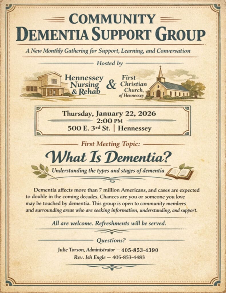 Community Dementia Support Group About The Author admin See author's posts Post navigation Previous: FOL Cookoff February 7thNext: Annual Calf Fry and Labor Auction