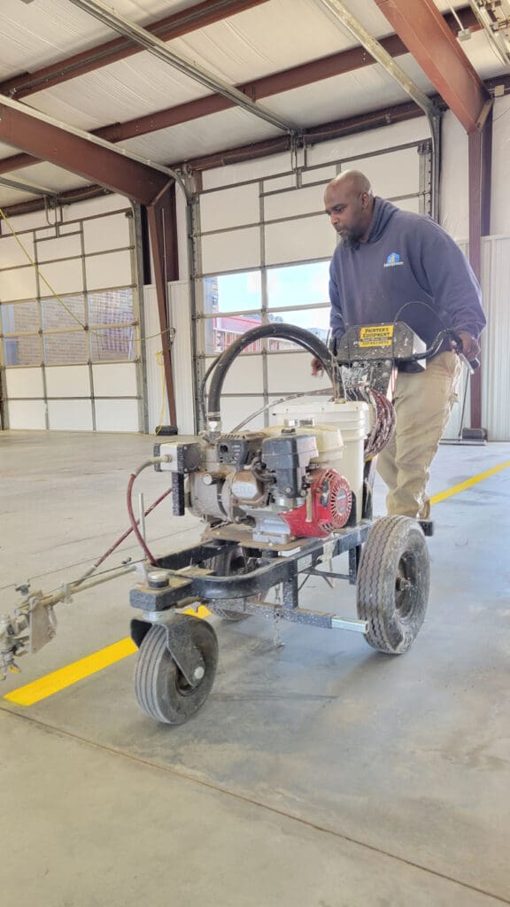 No more eyeballing it. No more “that’s probably straight.” No more firefighter-style creative parking. Every bay and parking space has now been carefully measured, marked, and painted.