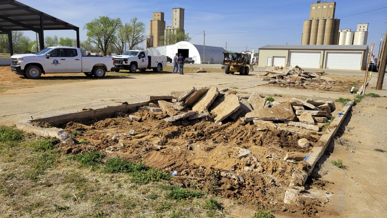 Over at the Pavilion, the Hennessey Department of Public Works crew has been hard at work removing broken concrete, making the area safer for foot traffic, and a little easier on the ankles.