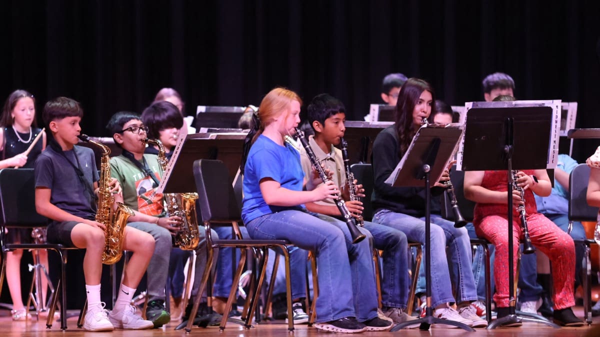 The 5th grade band, along with the combined 6th, 7th, and 8th grade bands, each took the stage in front of judges and guests, performing two pieces apiece. Later that afternoon, selected students also presented individual solos during the contest portion of the event.